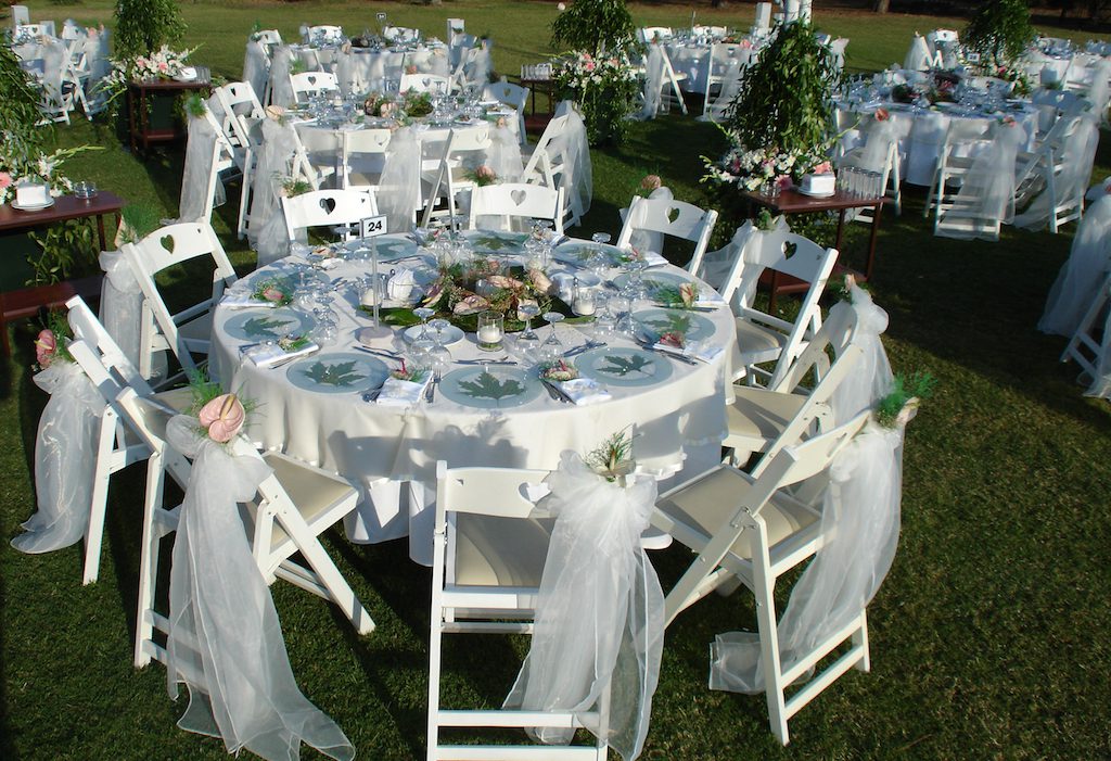 - Davet alanında yuvarlak ve dikdörtgen beyaz masalar ile sandalyeler kullanılıyor. Sandalye giydirmeleri ve masa örtülerinin rengini sen seçiyorsun.