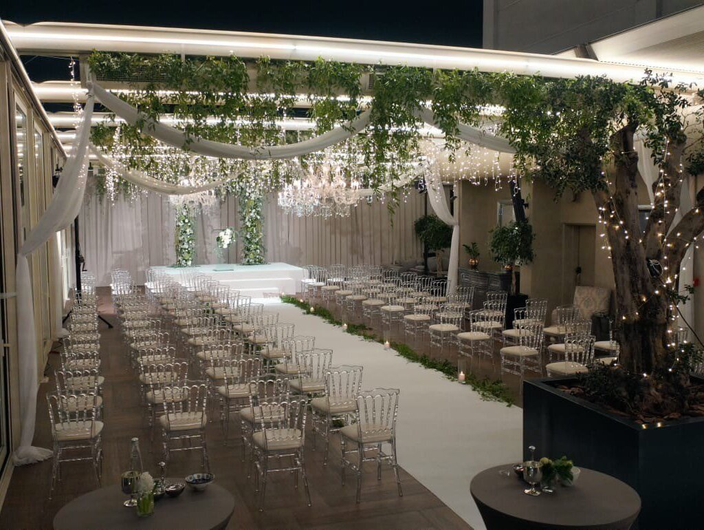 - Nikah alanındaki kilise düzeniyle sıralanmış şeffaf sandalye ve beyaz tül süslemeleri de sade ama elit bir enerjiye sahip.